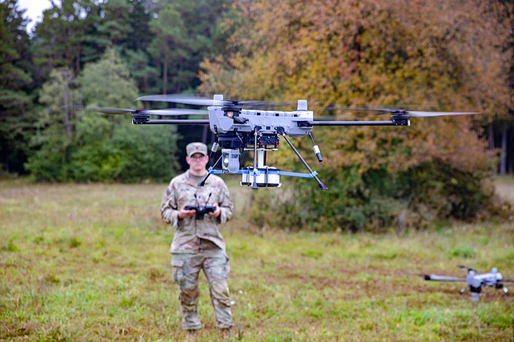 U.S. Soldiers from the Multi-Purpose Company, 1st Battalion, 502nd Infantry Regiment, 2nd Mobile Brigade Combat Team, 101st Airborne Division, are testing an innovative 3D-printed munition dropper, nicknamed the Widowmaker munitions dropper, to increase responsiveness and flexibility during Combined Resolve 26-1 in Hohenfels, Germany Oct. 9, 2025. During CbR 26-1, the U.S. Army is implementing its Continuous Transformation initiative, utilizing new technologies and systems designed to enhance its warfighting readiness and ability to respond to crisis or conflict. (U.S. Army photo by Spc. Adrian Greenwood)
