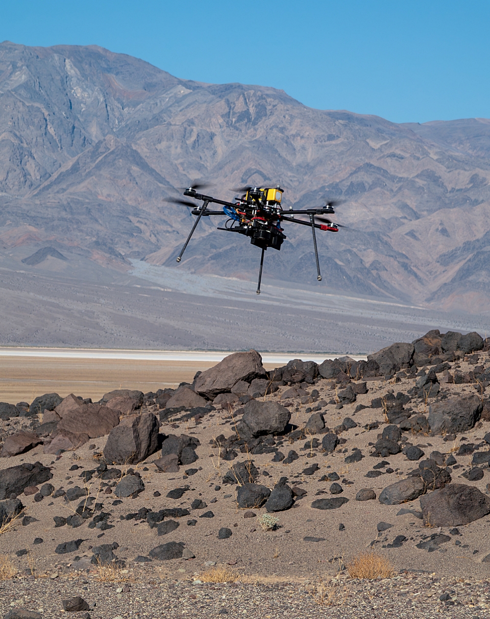One of three JPL drones used in recent tests flies over Mars Hill, a region of Death Valley National Park that has been visited by NASA Mars researchers since the 1970s, when the agency was preparing to land the twin Viking spacecraft on the Red Planet – NASA/JPL-Caltech