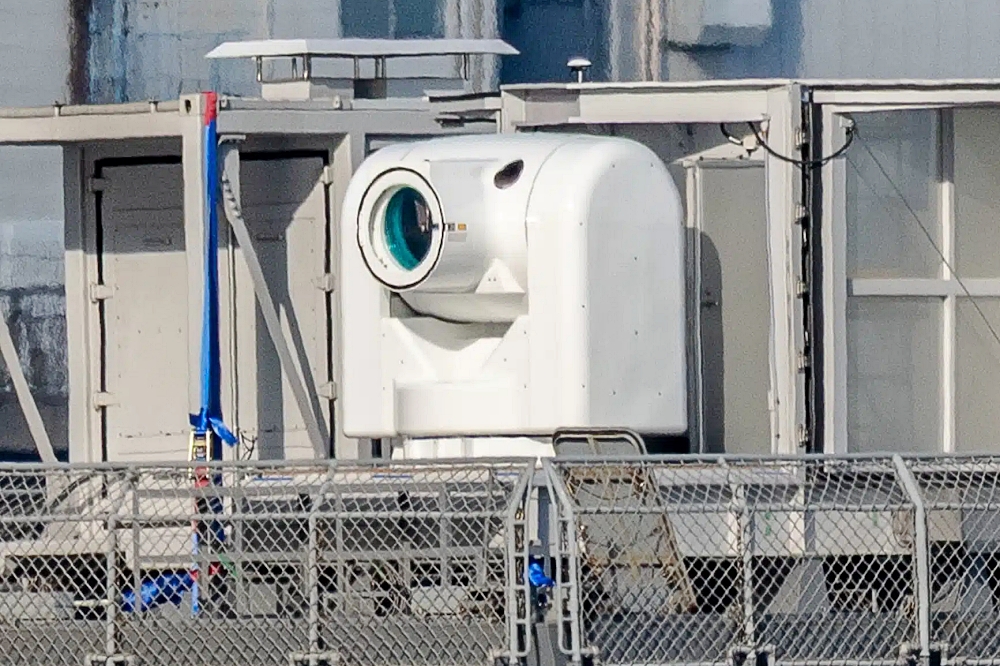 Images taken at JMU’s dock show the weapon’s dome-like beam director system installed on the rear deck of Asuka. The director is linked to thermal imaging, fast-steering mirrors, and precision tracking sensors designed to keep the laser focused on fast-moving threats.