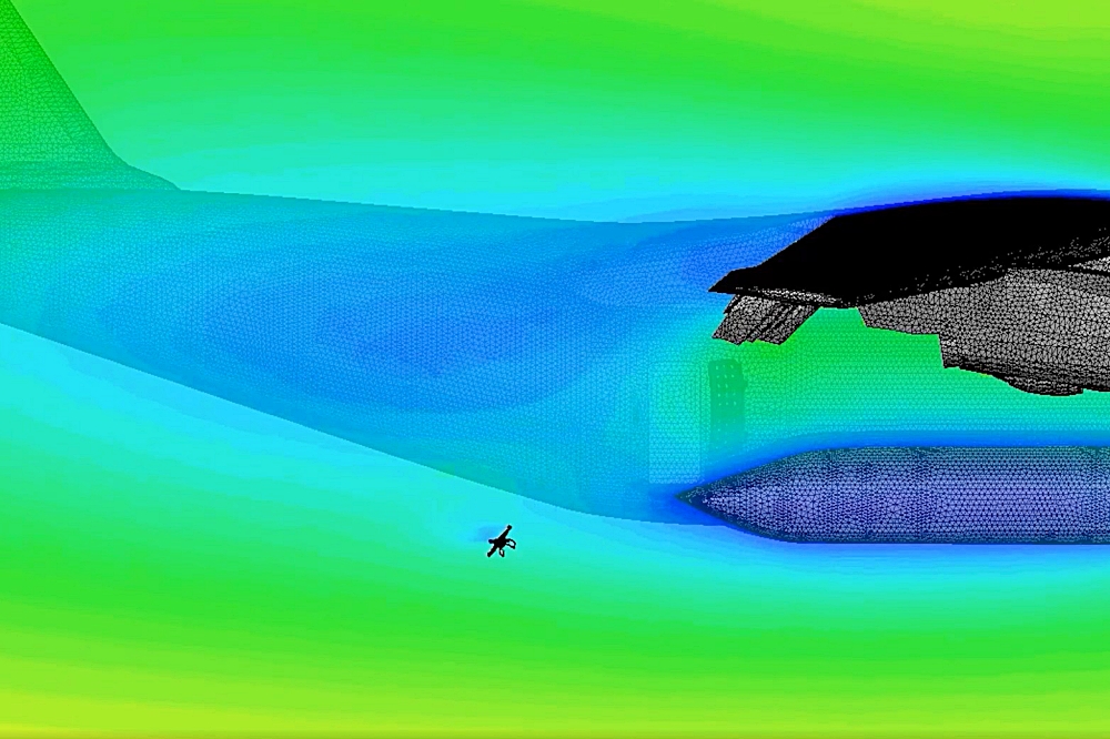 Computational fluid dynamics (CFD) visualization of drone separation from an Airbus A400M (Credit: DGA – Direction générale de l’armement)