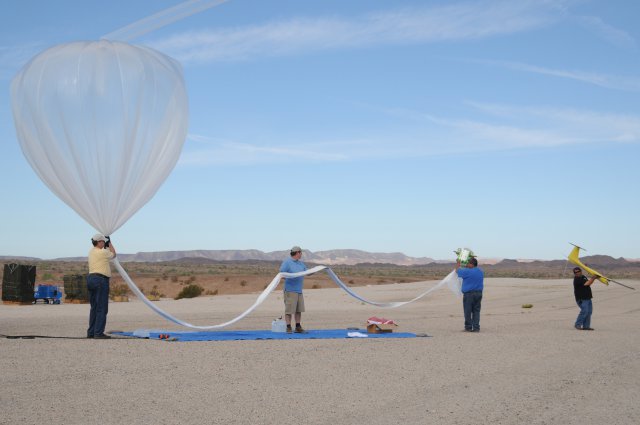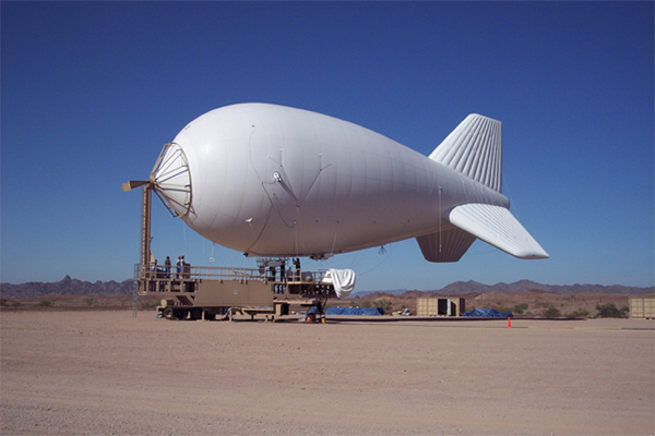 Lt. Col. Hilton Nunez, with Army G-2, talks with Steve Bond of Northrop Grumman about the Long Endurance Multi-Intelligence Vehicle, near a model of the LEMV, during the Association of the United States Army Aviation Symposium and Exposition - Photo: C. Todd Lopez