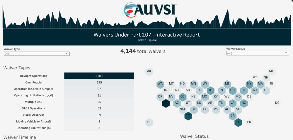 The AUVSI has just made a new interactive report available entitled ‘Analysis of Part 107 Waivers Granted by FAA‘