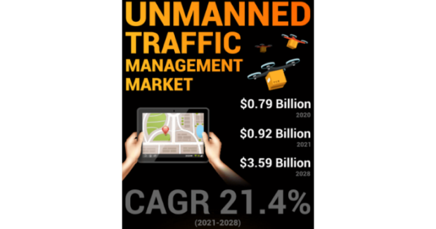 The unmanned traffic management market size was valued at 0.79 billion in 2020. The market is expected to rise from $0.92 billion in 2021 to $3.59 billion by 2028 at a CAGR of 21.4 % during the forecast period 2021-2028. Continue reading